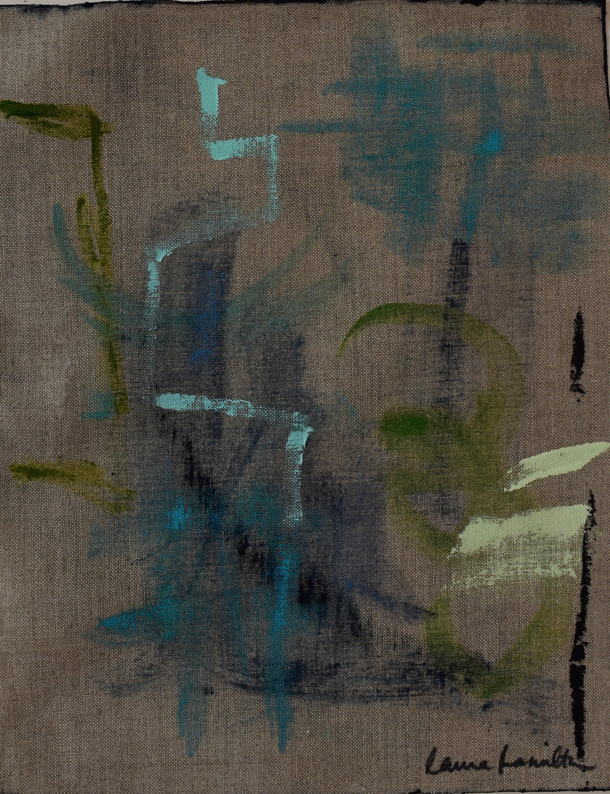 11" x 14". Original art by Laura Hamilton. Mixed media on raw linen canvas. Unframed.