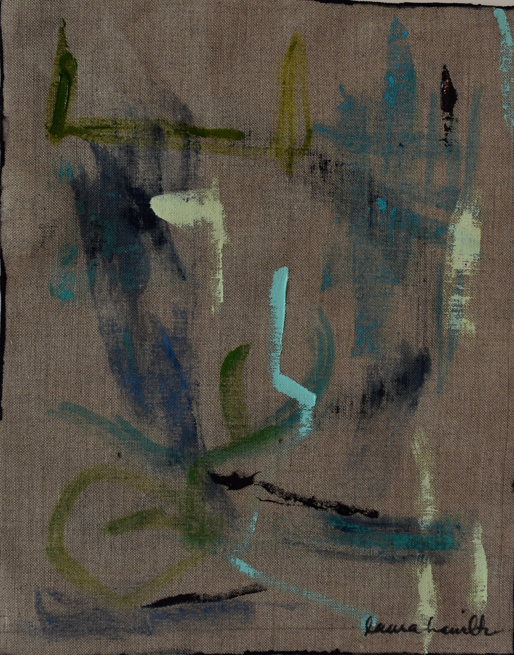 11" x 14". Original art by Laura Hamilton. Mixed media on raw linen canvas. Unframed.