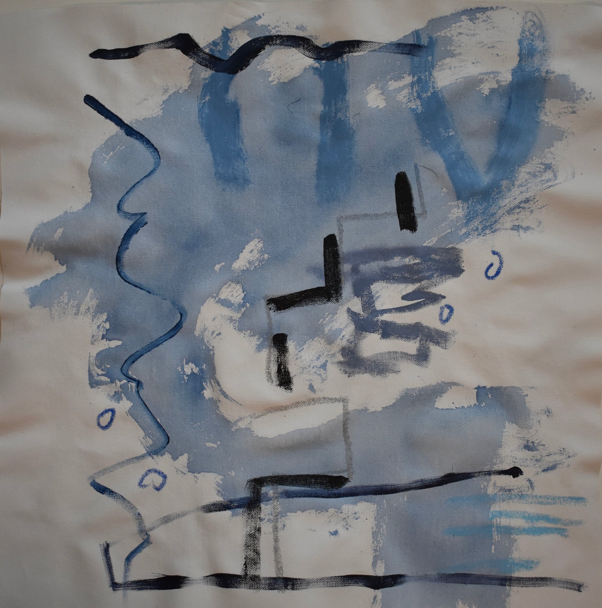 19.5" x 19.5". Original art by Laura Hamilton. Mixed media on primed linen canvas. Unframed.