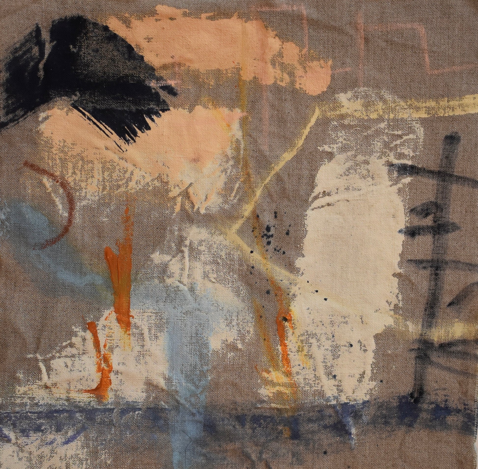 11.5" x 11.5". Original art by Laura Hamilton. Mixed media on raw linen canvas. Unframed.