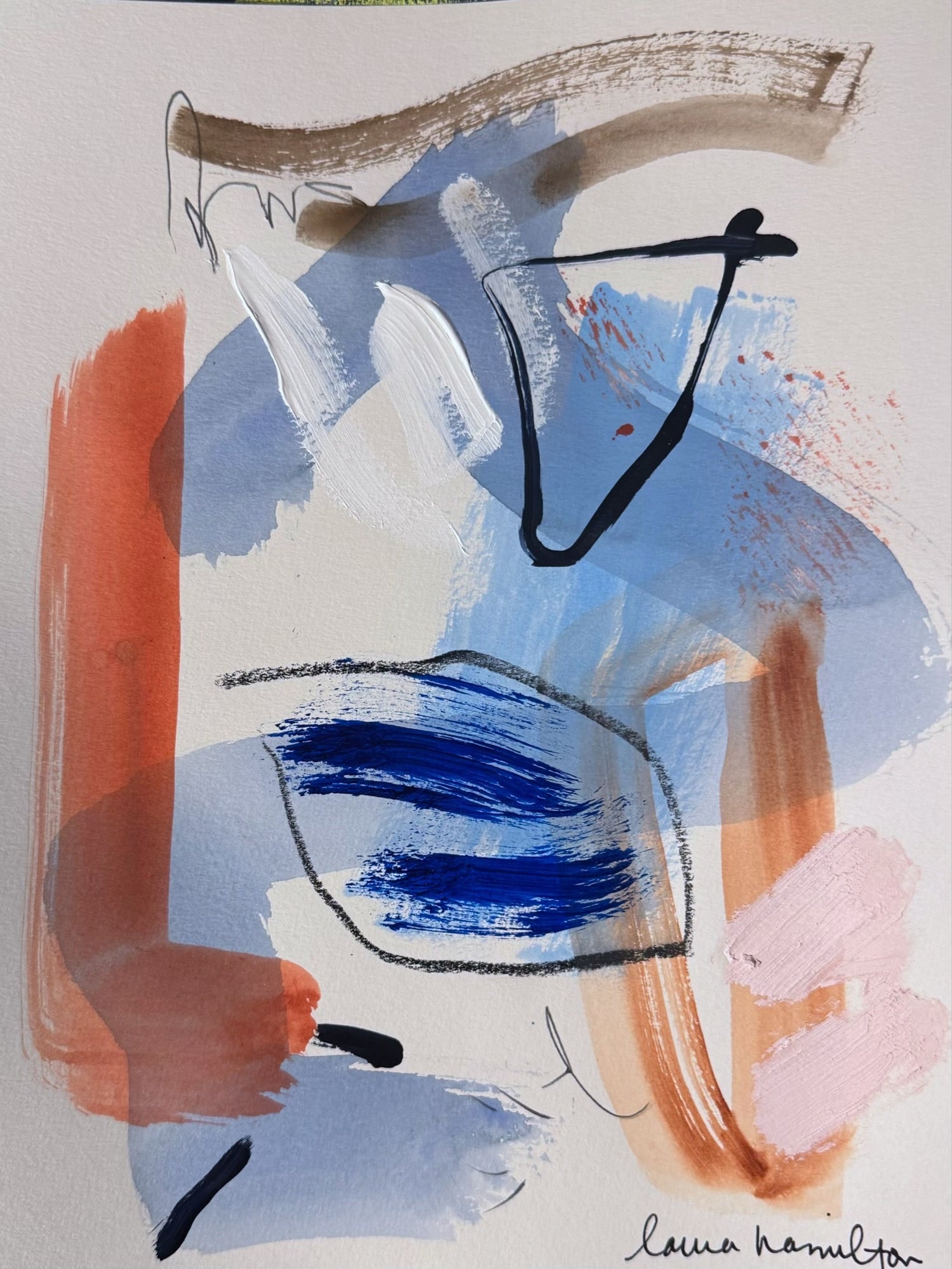Original art by Laura Hamilton. 9" x 12" original abstract painting on paper. Mixed media. Unframed.