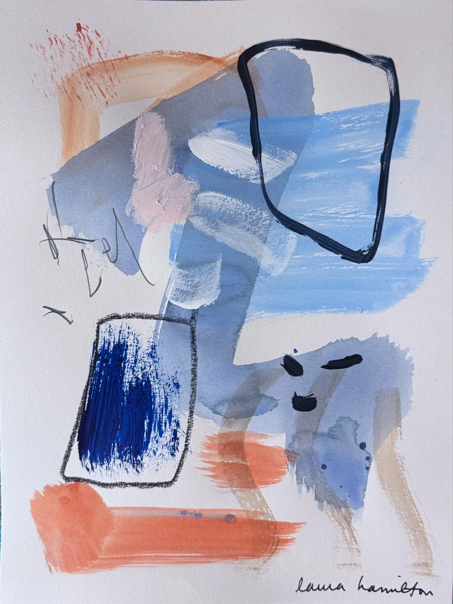 Original art by Laura Hamilton. 9" x 12" original abstract painting on paper. Mixed media. Unframed.