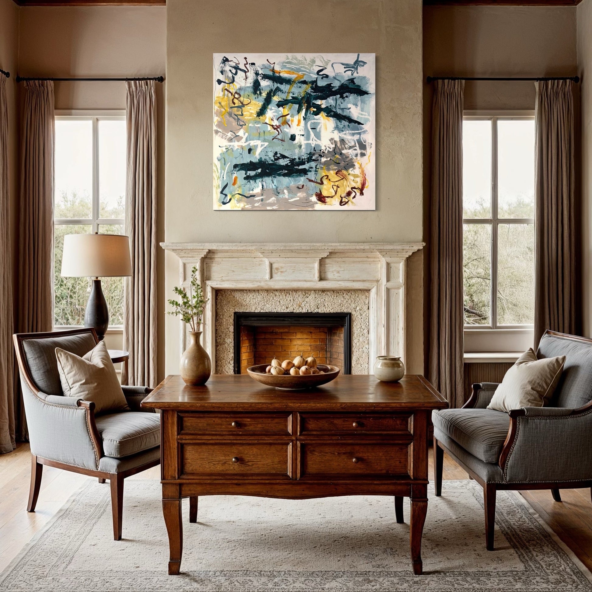 36" x 36" abstract painting on wood panel. Ready to hang. Mixed media. Original art by Laura Hamilton. Unframed.