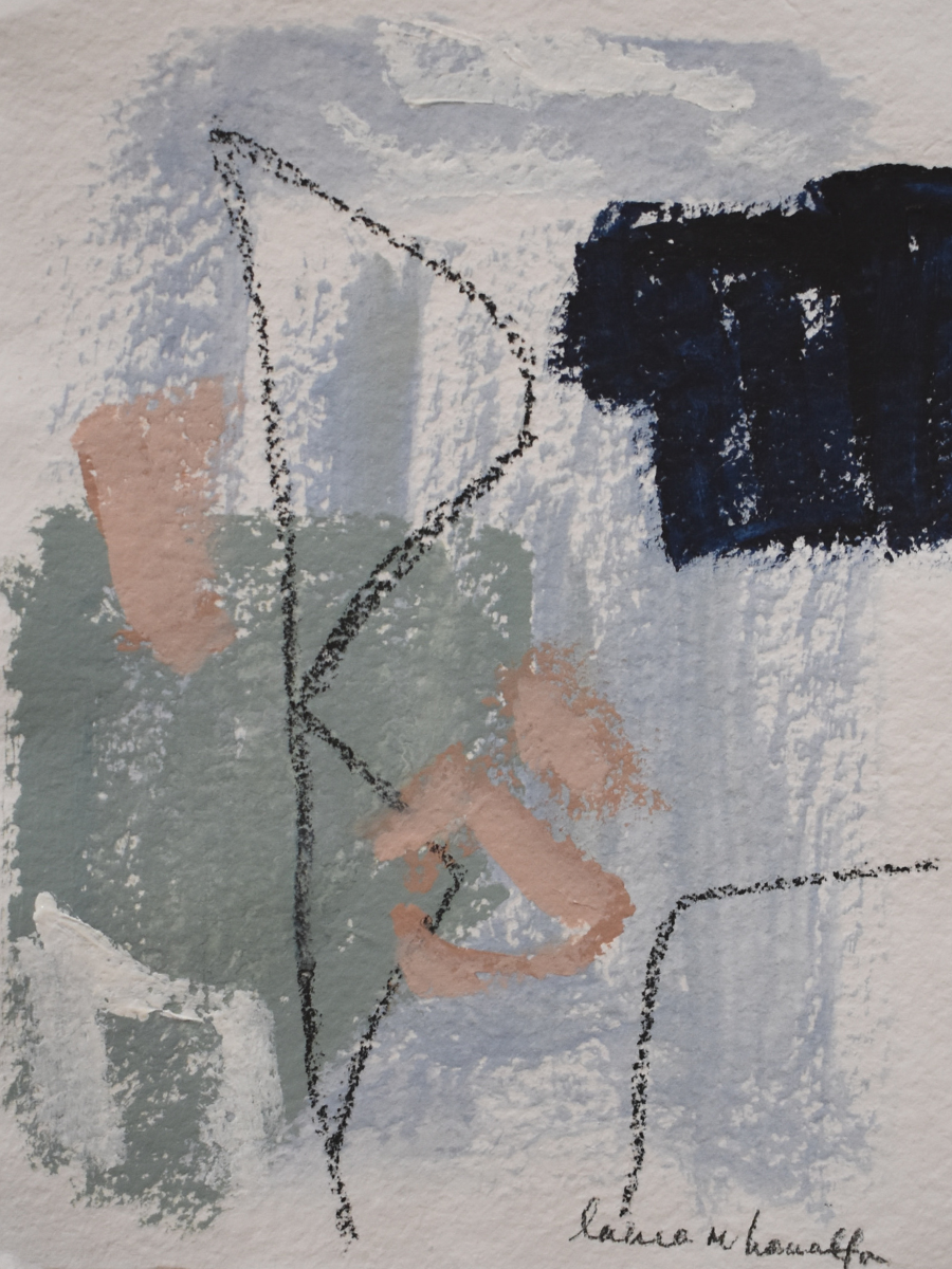 Original art by Laura Hamilton. Mixed media on handmade watercolor paper. 9" x 12". Unframed.