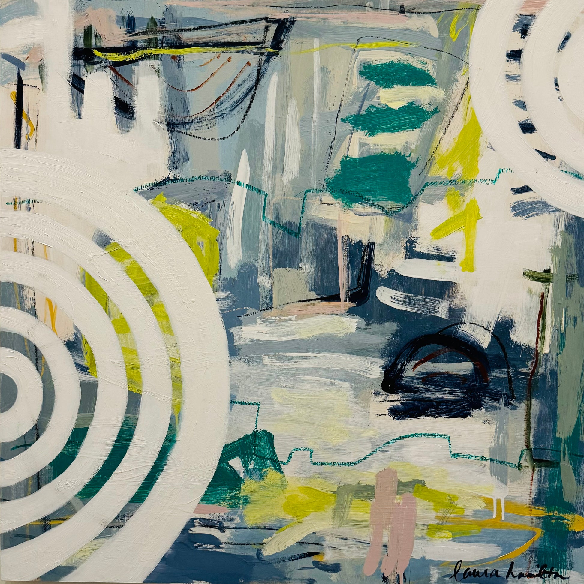 30" x 30" original abstract painting on birch wood panel. Mixed media. Original art by Laura Hamilton. Unframed.