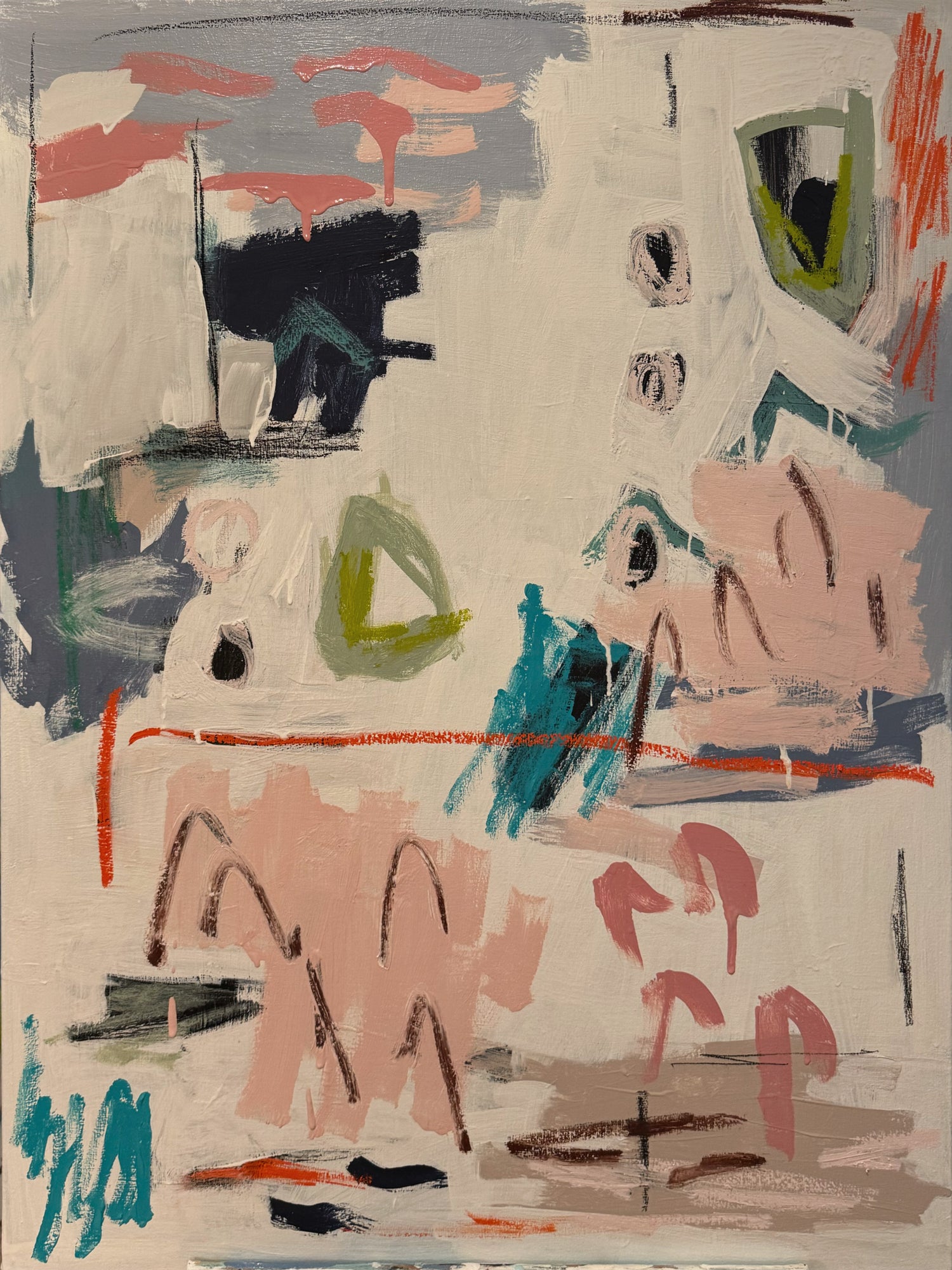 30" x 40" original abstract painting on stretched canvas. Mixed media. Unframed.