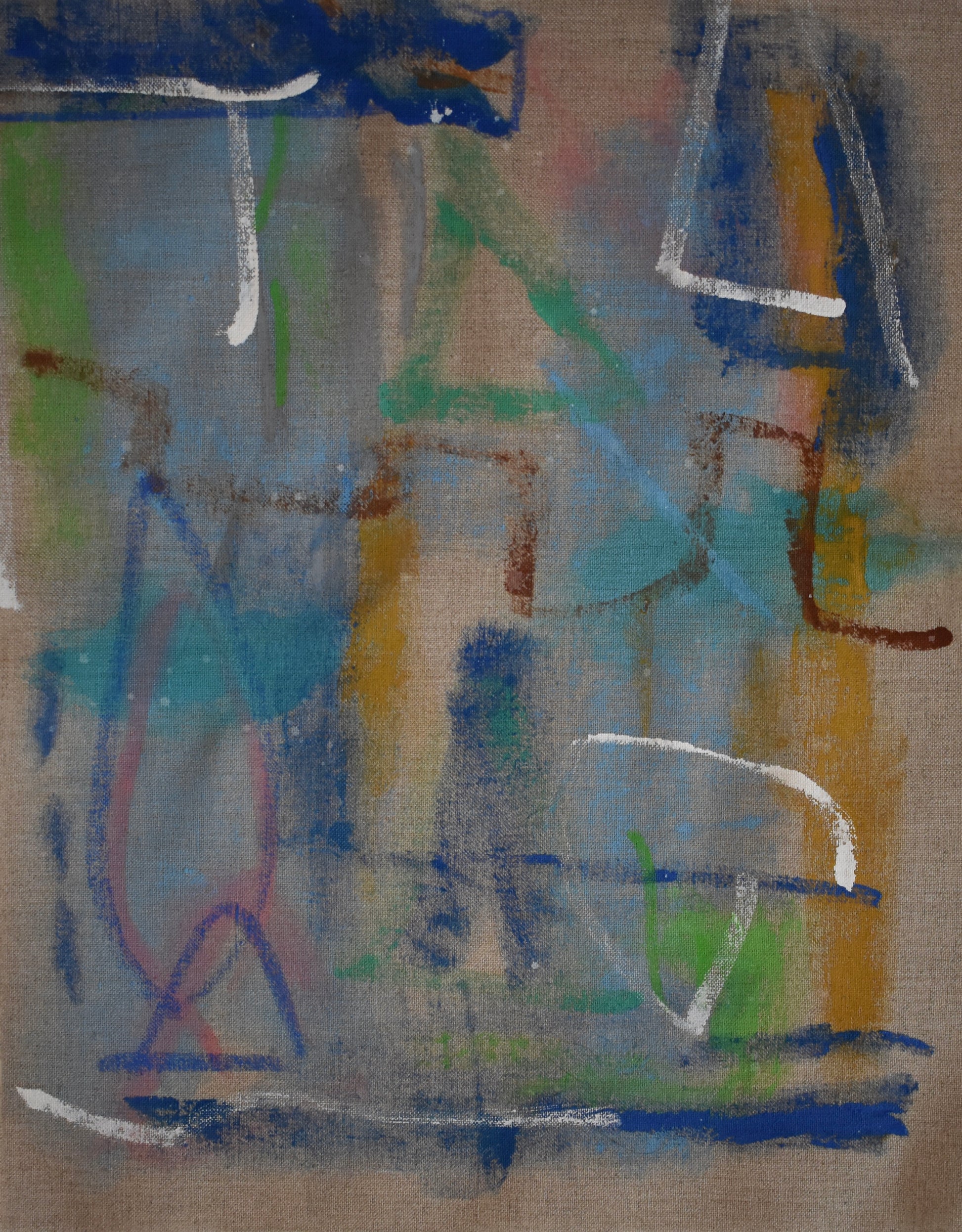 15.5" x 18.5". Original art by Laura Hamilton. Mixed media on raw linen canvas. Unframed.