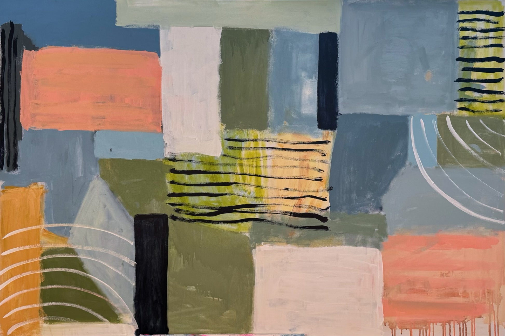 40" x 60" original abstract painting on stretched canvas. Mixed media. Unframed.